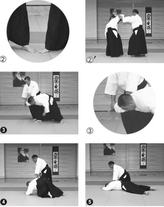 In the below pictorial demonstration, Morihiro Saito provides instruction on the basic omote application of the technique. Notably in the basic application the nage strikes first.